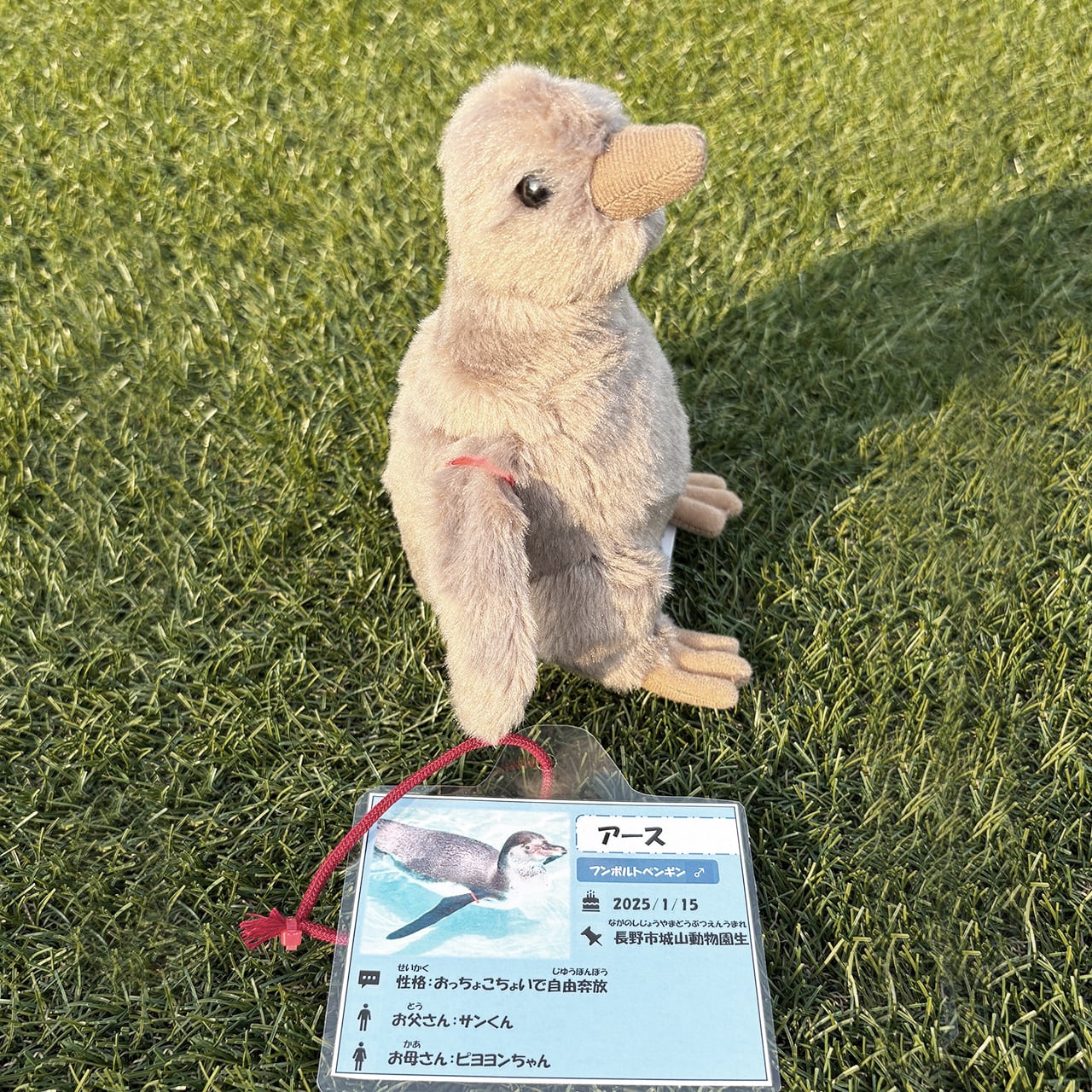 2025年1月15日に誕生したフンボルトペンギンのヒナの「アース」にそっくりなぬいぐるみ。