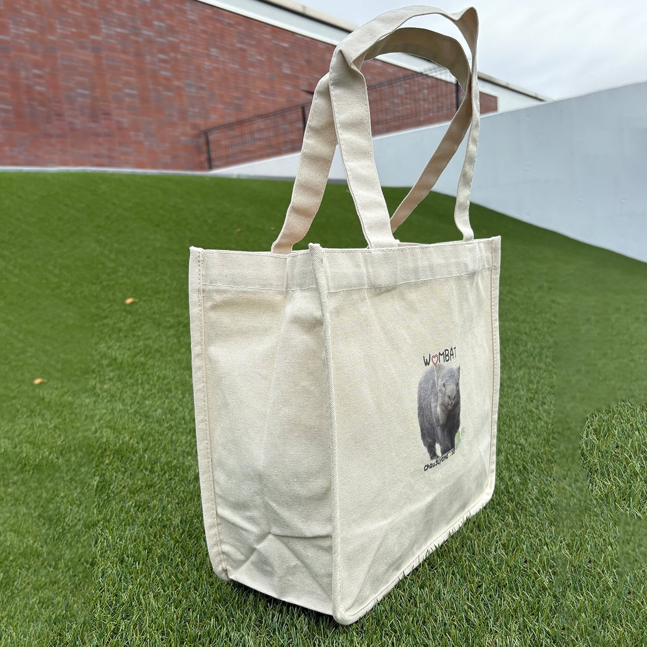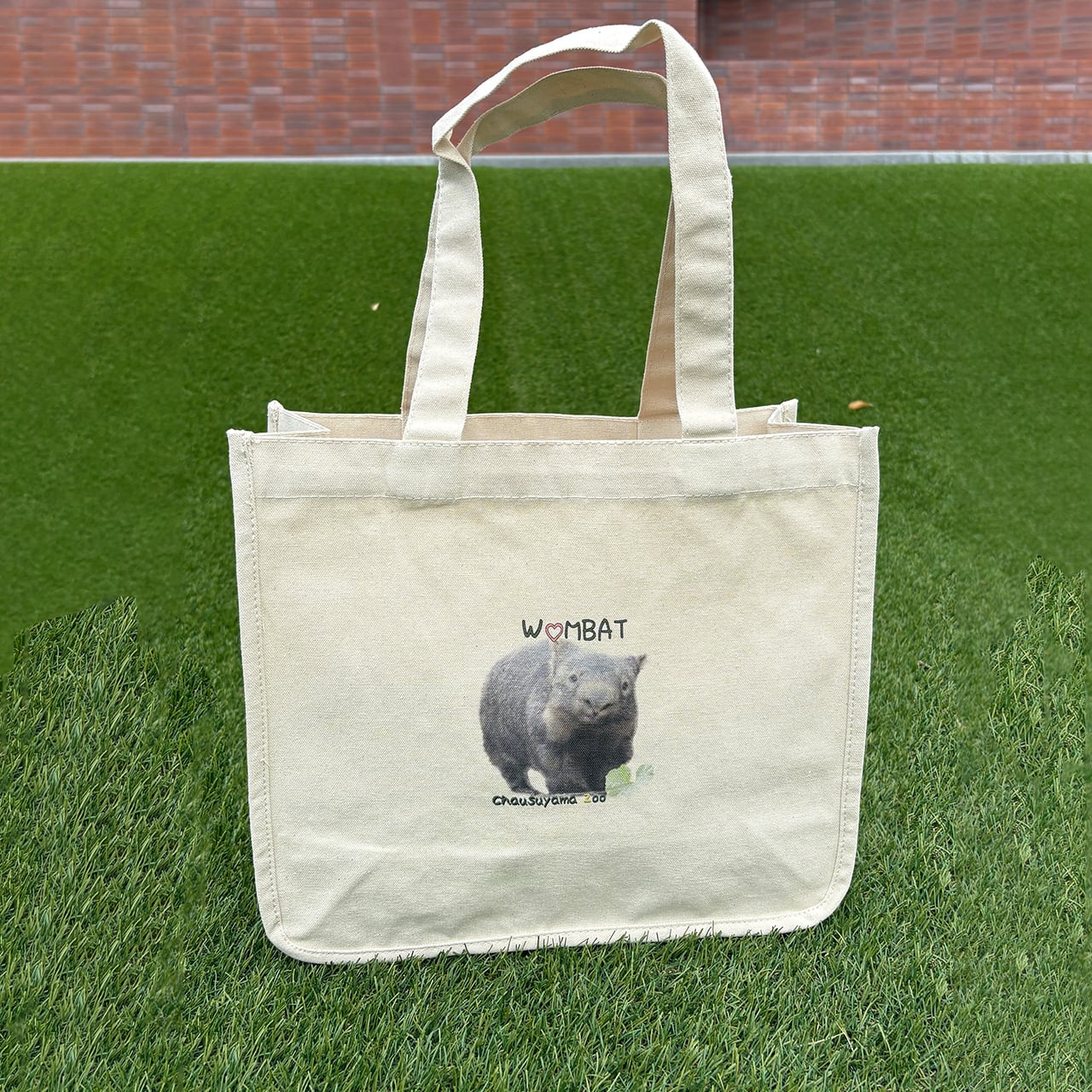 茶臼山動物園の人気者、ウォンバットがモチーフになったオリジナルトートバッグです。
